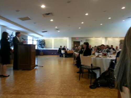 Joe Pojman, standing at the podium. Our President, Davida Stike is seated at the head table. Next up, our Lieutenant Governor, David Dewhurst.