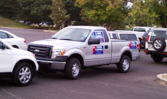 I also saw lots of Donna Campbell for Senate District 25 stickers and met other supporters of Dr. Donna. The “G” family truck was decorated appropriately.